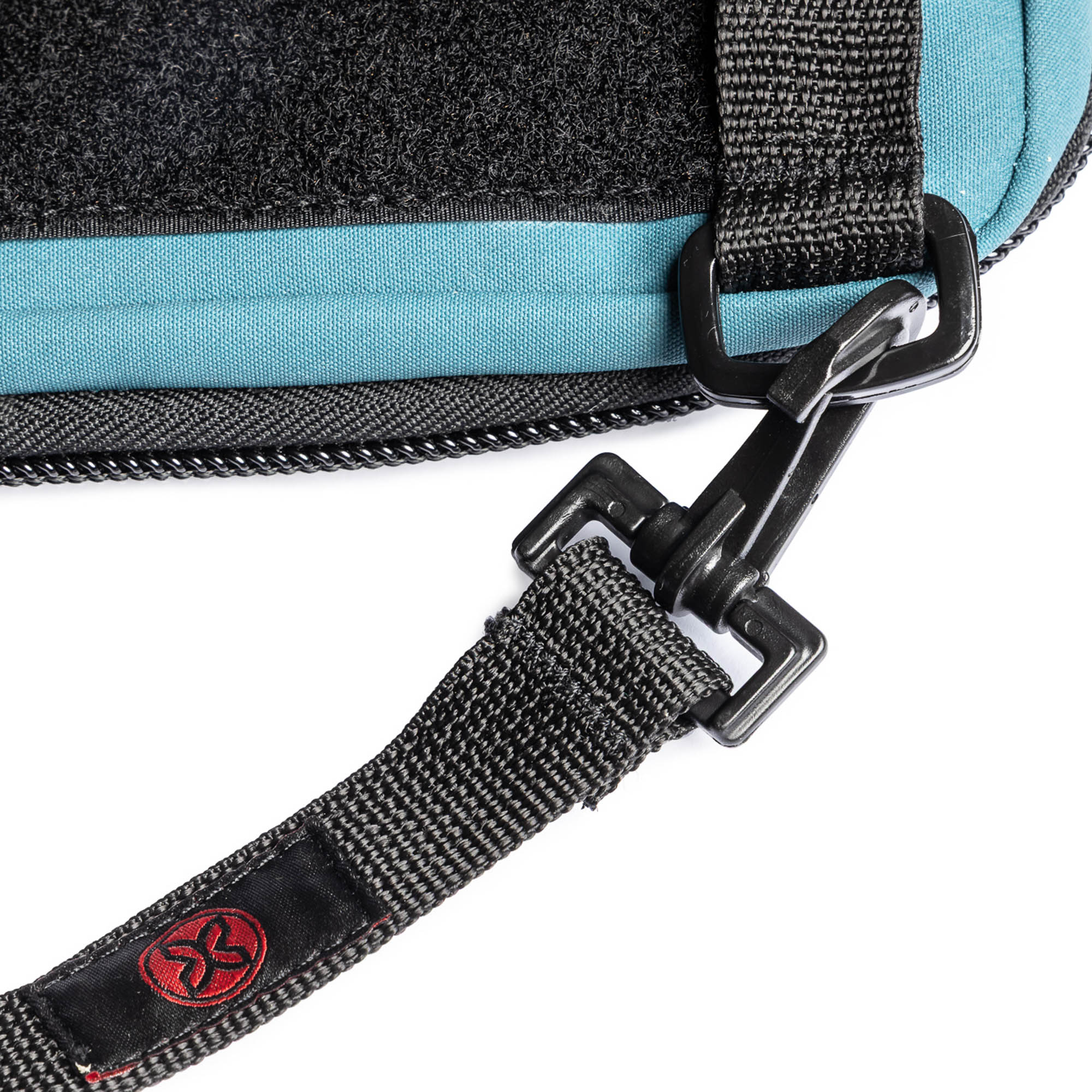 Or use the narrower straps as a shoulder or cross-body strap with the quick-remove buckles. Or remove the straps entirely when you just want a slim hand-carry pouch or to attach it to a bag, bicycle, motorcycle or your backpack.